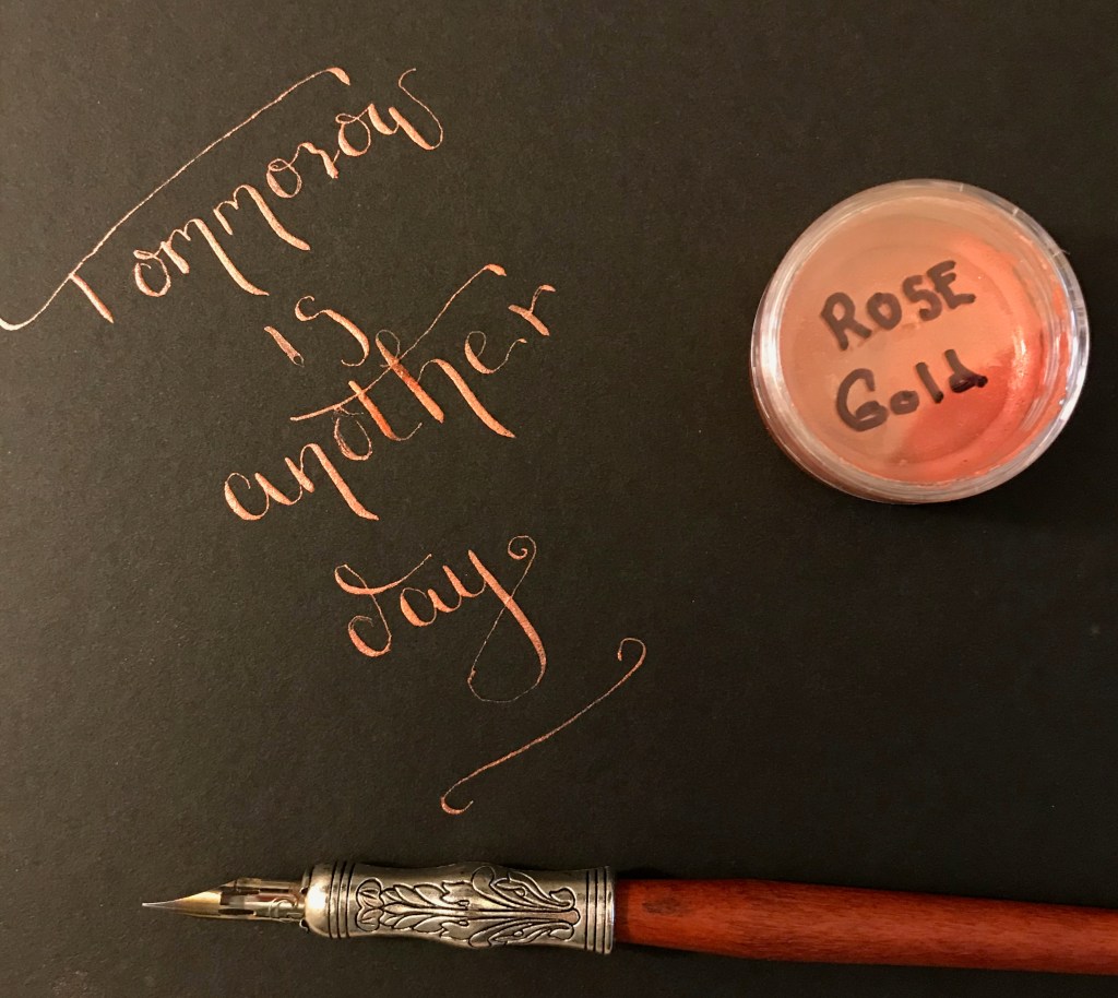 So, as I said the other day, this is all about paper. Another of my passions – although this is new, is calligraphy. It’s something I have always admired and tried to do similar to. But because I never actually researched I didn’t realise there was actually a specific way to do it. So I have tried teaching myself and bought a bunch of books, a few of which have been really helpful. Of course, I have ALL the supplies, of course, I do. Because if there is an interest that needs supplies, I’m on it like fleas. I have nowhere to put all my stuff. Sometimes I just sit looking at it all, like a kid in a sweetshop